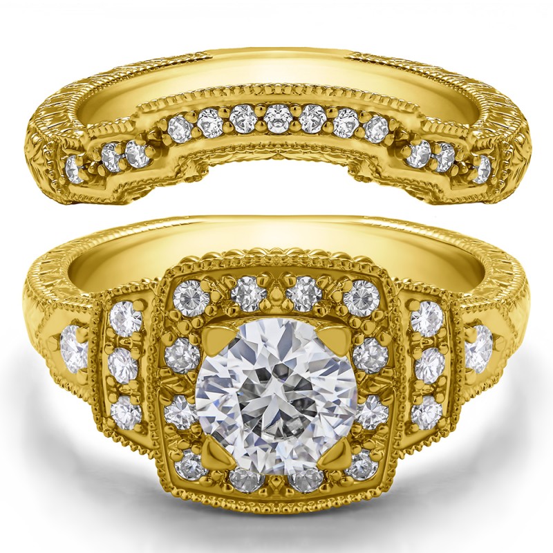 Vintage Halo Engagement Ring Bridal Set (2 Rings) (1.45 Ct. Twt.)