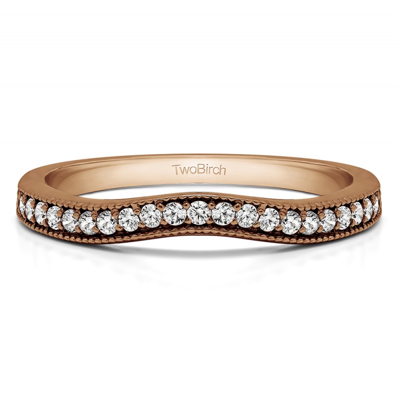This TwoBirch bridal set features two rings: an engagement ring and matching wedding band. Every bridal set we sell is made with conflict free and eco-conscious metals and stones. This engagement ring features a Round center stone, surrounded by 31 side stones. The engagement ring has a 0.5 carat center stone, and 0.28 carats of side stones, giving the engagement ring a total weight of 0.78 carats. The matching wedding band in this set has 23 stones with a total weight of 0.23 carats. This bridal set has a total combined weight of 1.01 carats. If you would like to purchase just the engagement ring in this set, please search for TB-ENG-211-F5H in the search bar above. This set is available in many variations of gold, as well as moissanite, diamonds, or even as a mounting with no center stone. Please make selections from the drop down menus.