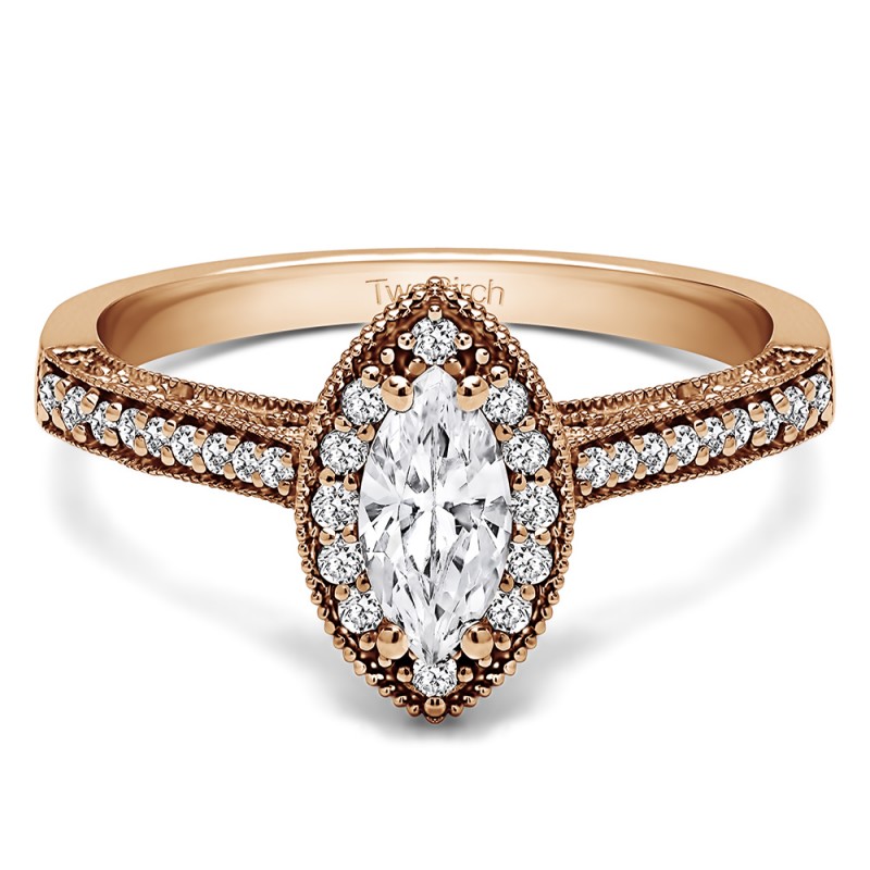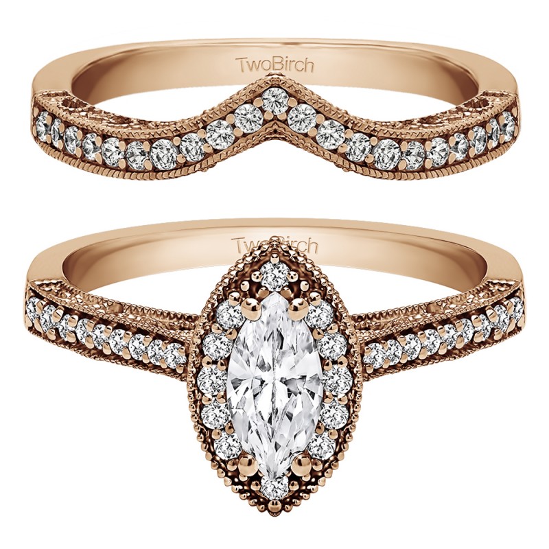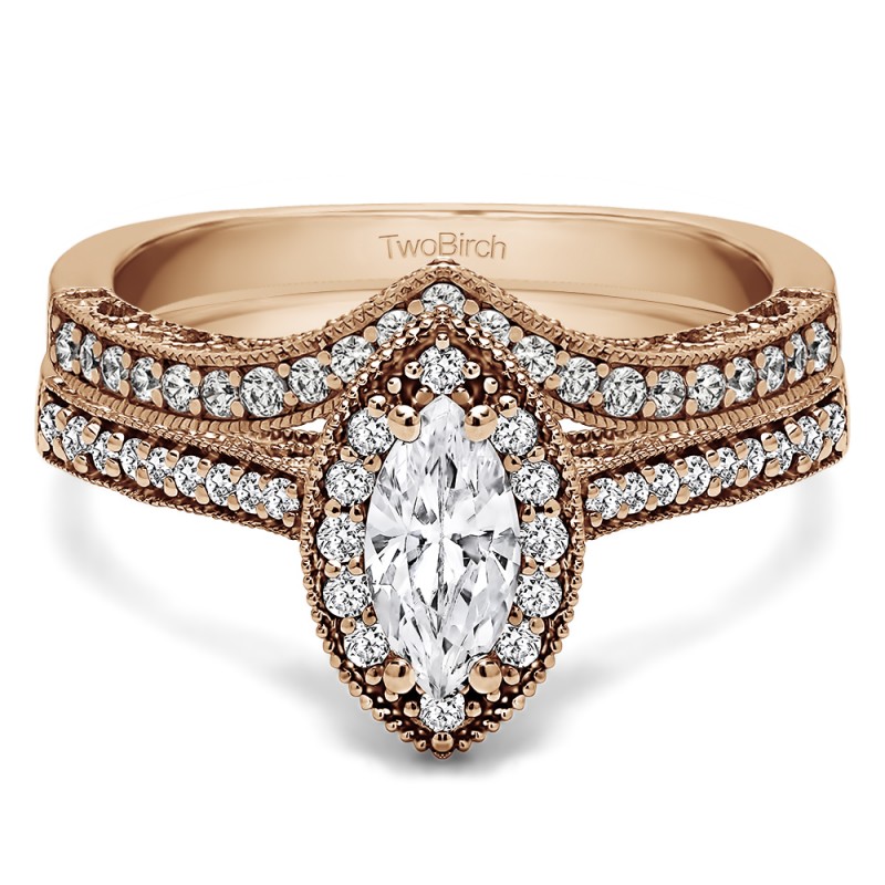 Marquise Vintage Halo Engagement Ring Bridal Set (2 Rings) (1.03 Ct. Twt.)