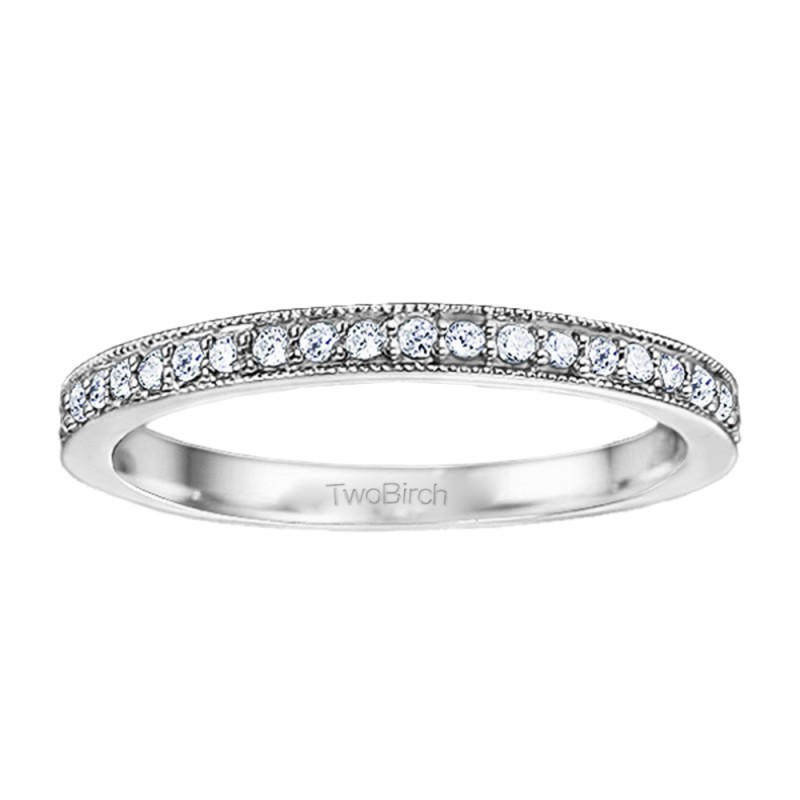 This TwoBirch bridal set features two rings: an engagement ring and matching wedding band. Every bridal set we sell is made with conflict free and eco-conscious metals and stones. This engagement ring features a Round center stone, surrounded by 56 side stones. The engagement ring has a 0.75 carat center stone, and 0.39 carats of side stones, giving the engagement ring a total weight of 1.14 carats. The matching wedding band in this set has 25 stones with a total weight of 0.19 carats. This bridal set has a total combined weight of 1.33 carats. If you would like to purchase just the engagement ring in this set, please search for TB-ENG-240-F7J in the search bar above. This set is available in many variations of gold, as well as moissanite, diamonds, or even as a mounting with no center stone. Please make selections from the drop down menus.