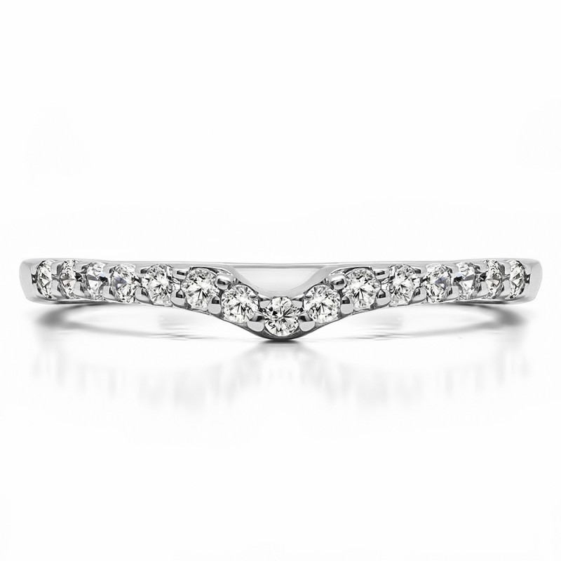 This curved wedding ring features 15 round, prong set stones with 0.15 carats in total. The ring is 2 millimeters wide and weighs approximately 2.16 grams. This contour band is made to fit a round, princess or marquise cut solitaire from 0.2 carats up to 1.5 carats. Curved rings are perfect for most style engagement rings. If you are unsure what will fit with your engagement ring, please add Virtual Fit onto your order so we can email you images of our ring with yours for approval before shipping.