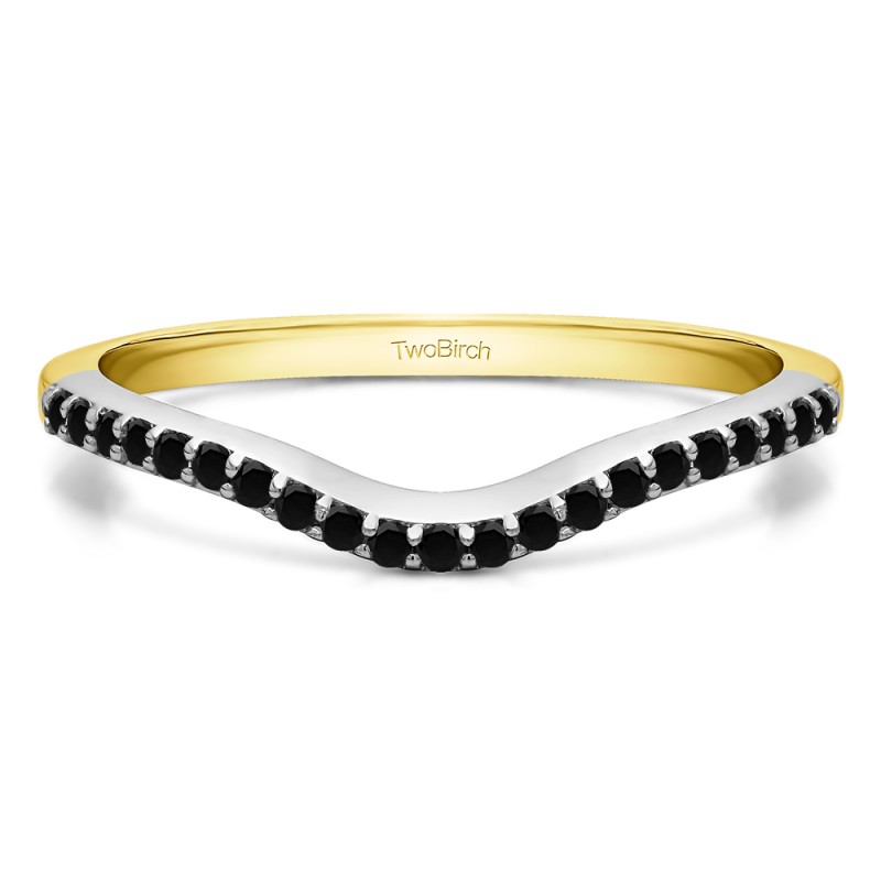 This curved wedding ring features 21 round, prong set stones with 0.16 carats in total. The ring is 2 millimeters wide and weighs approximately 2.72 grams. This contour band is made to fit a round solitaire from 0.25 carats up to 0.5 carats, a marquise solitaire from 0.25 carats up to 1 carats, or a princess cut solitaire from 0.25 carats up to 0.75 carats. Curved rings are perfect for most style engagement rings. If you are unsure what will fit with your engagement ring, please add Virtual Fit onto your order so we can email you images of our ring with yours for approval before shipping.