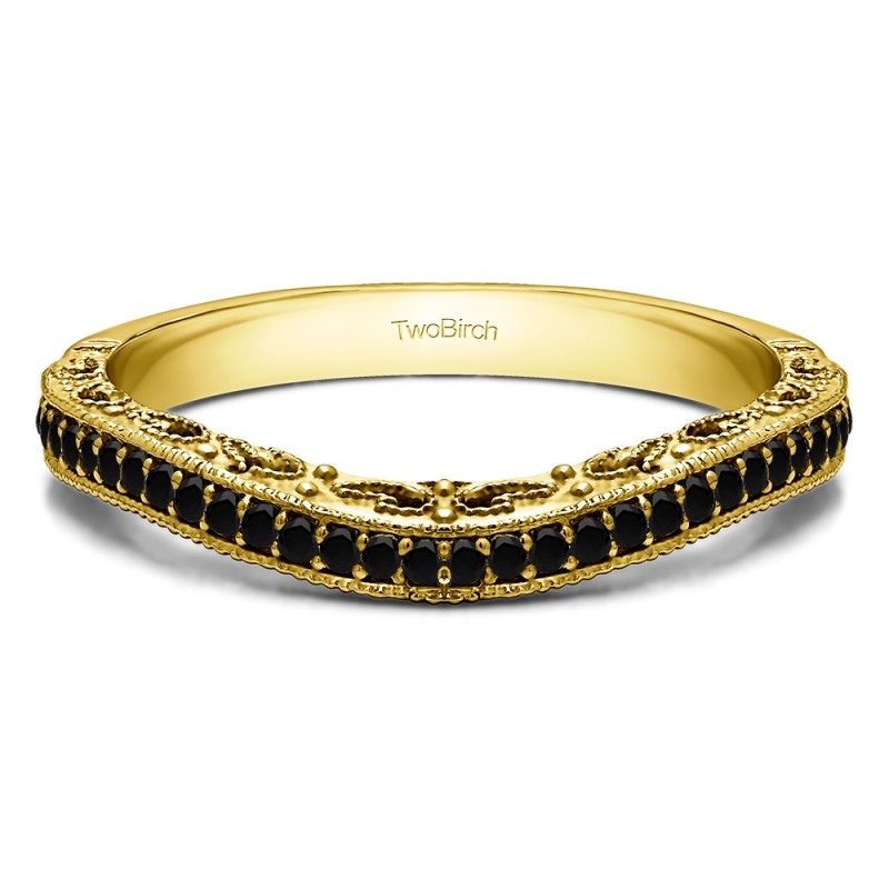 This curved wedding ring features 36 round, prong set stones with 0.18 carats in total. The ring is 2 millimeters wide and weighs approximately 3.45 grams. This contour band is made to fit a round solitaire from 0.25 carats up to 0.5 carats, a marquise solitaire from 0.25 carats up to 1 carats, or a princess cut solitaire from 0.25 carats up to 0.75 carats. Curved rings are perfect for most style engagement rings. If you are unsure what will fit with your engagement ring, please add Virtual Fit onto your order so we can email you images of our ring with yours for approval before shipping.