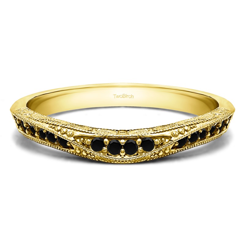 This curved wedding ring features 16 round, prong set stones with 0.18 carats in total. The ring is 2 millimeters wide and weighs approximately 3.76 grams. a round, princess or marquise cut solitaire from 0.5 carats up to 2 carats. Curved rings are perfect for most style engagement rings. If you are unsure what will fit with your engagement ring, please add Virtual Fit onto your order so we can email you images of our ring with yours for approval before shipping.