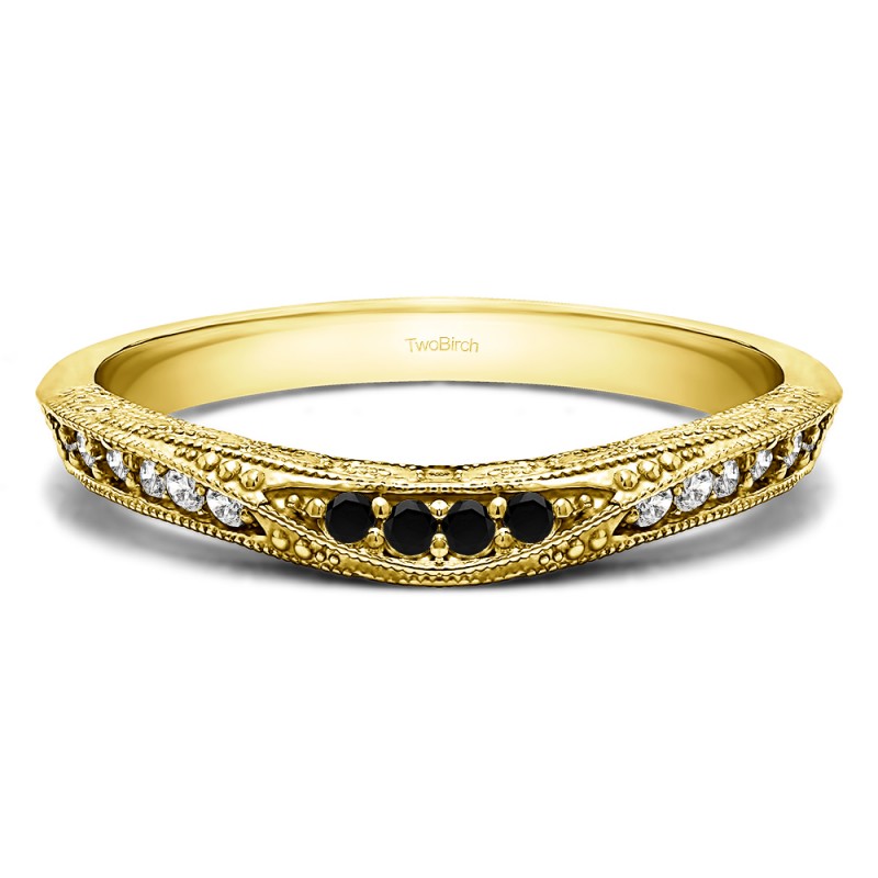 This curved wedding ring features 16 round, prong set stones with 0.18 carats in total. The ring is 2 millimeters wide and weighs approximately 3.76 grams. This contour band is made to fit a round solitaire from 0.5 carats up to 2 carats, a marquise solitaire from 0.25 carats up to 1 carats, or a princess cut solitaire from 0.5 carats up to 1 carats. Curved rings are perfect for most style engagement rings. If you are unsure what will fit with your engagement ring, please add Virtual Fit onto your order so we can email you images of our ring with yours for approval before shipping.