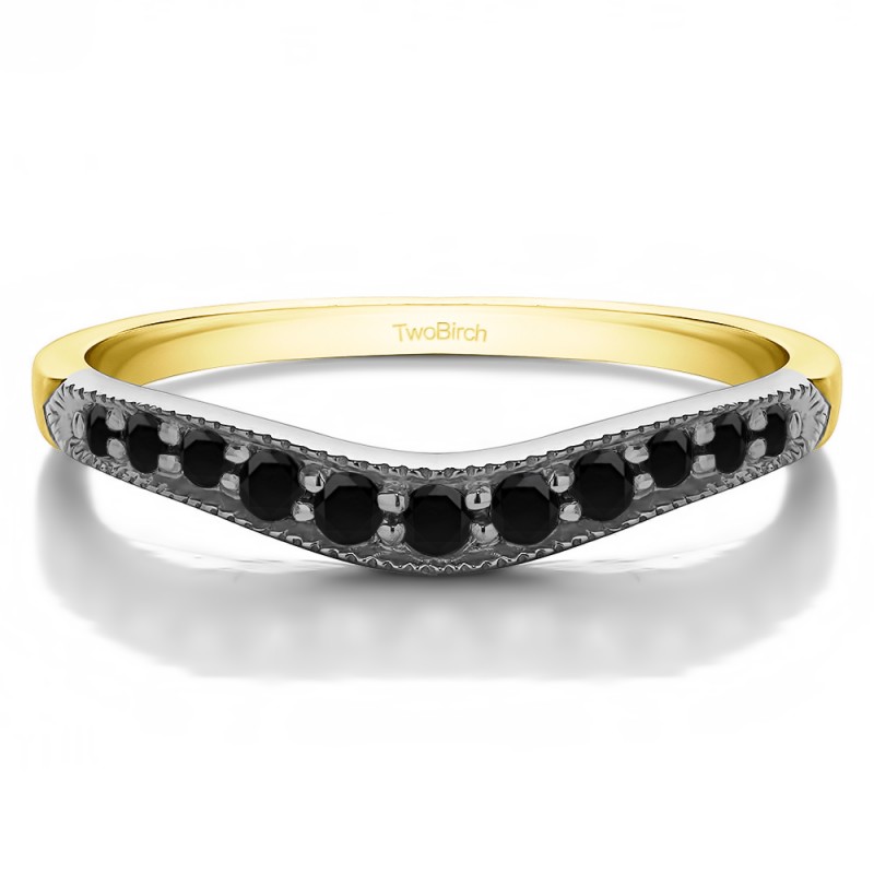This curved wedding ring features 11 round, prong set stones with 0.2 carats in total. The ring is 2 millimeters wide and weighs approximately 2.72 grams. This contour band is made to fit a round solitaire from 0.25 carats up to 0.5 carats, a marquise solitaire from 0.25 carats up to 1 carats, or a princess cut solitaire from 0.25 carats up to 0.75 carats. Curved rings are perfect for most style engagement rings. If you are unsure what will fit with your engagement ring, please add Virtual Fit onto your order so we can email you images of our ring with yours for approval before shipping.