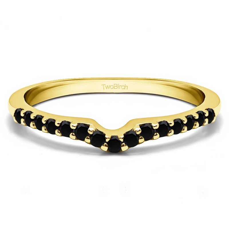 This curved wedding ring features 15 round, prong set stones with 0.25 carats in total. The ring is 2 millimeters wide and weighs approximately 2.16 grams. This contour band is made to fit a round, princess or marquise cut solitaire from 0.2 carats up to 1.5 carats. Curved rings are perfect for most style engagement rings. If you are unsure what will fit with your engagement ring, please add Virtual Fit onto your order so we can email you images of our ring with yours for approval before shipping.