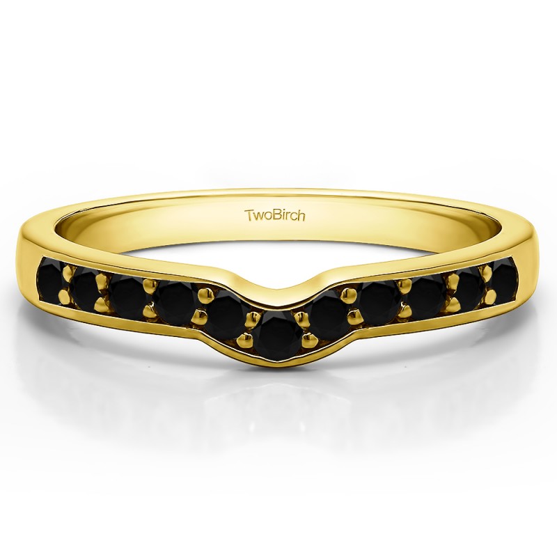 This curved wedding ring features 11 round, prong set stones with 0.33 carats in total. The ring is 2 millimeters wide and weighs approximately 3.68 grams. This contour band is made to fit a round solitaire from 0.25 carats up to 0.5 carats, a marquise solitaire from 0.25 carats up to 1 carats, or a princess cut solitaire from 0.25 carats up to 0.75 carats. Curved rings are perfect for most style engagement rings. If you are unsure what will fit with your engagement ring, please add Virtual Fit onto your order so we can email you images of our ring with yours for approval before shipping.