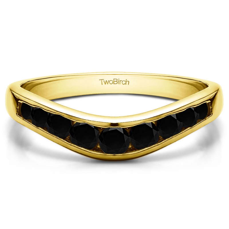 This curved wedding ring features 9 round, channel set stones with 0.42 carats in total. The ring is 2 millimeters wide and weighs approximately 4.56 grams. This contour band is made to fit a round solitaire from 0.25 carats up to 0.5 carats, a marquise solitaire from 0.25 carats up to 1 carats, or a princess cut solitaire from 0.25 carats up to 0.75 carats. Curved rings are perfect for most style engagement rings. If you are unsure what will fit with your engagement ring, please add Virtual Fit onto your order so we can email you images of our ring with yours for approval before shipping.