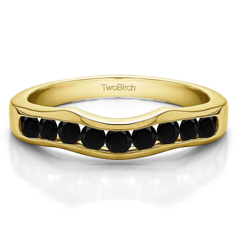 This curved wedding ring features 8 round, channel set stones with 0.48 carats in total. The ring is 2 millimeters wide and weighs approximately 4.25 grams. This contour band is made to fit a round, princess or marquise cut solitaire from 0.2 carats up to 1.5 carats. Curved rings are perfect for most style engagement rings. If you are unsure what will fit with your engagement ring, please add Virtual Fit onto your order so we can email you images of our ring with yours for approval before shipping.