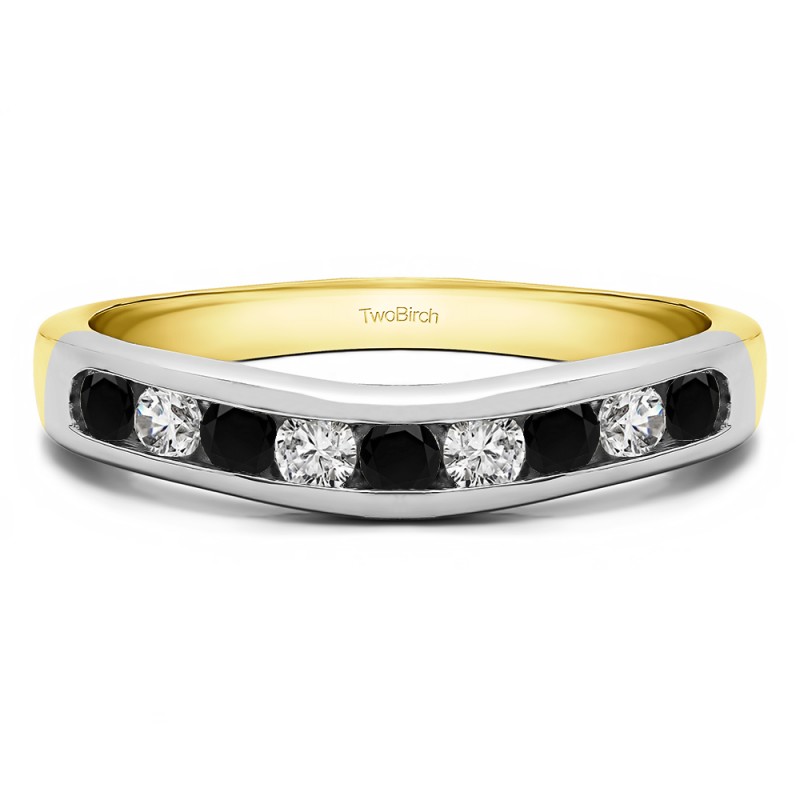 This curved wedding ring features 9 round, channel set stones with 0.5 carats in total. The ring is 2 millimeters wide and weighs approximately 4.14 grams. This contour band is made to fit a round, princess or marquise solitaire from 0.5 carats up to 1.5 carats. Curved rings are perfect for most style engagement rings. If you are unsure what will fit with your engagement ring, please add Virtual Fit onto your order so we can email you images of our ring with yours for approval before shipping.
