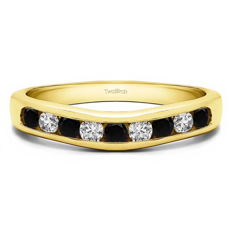 This curved wedding ring features 9 round, channel set stones with 0.5 carats in total. The ring is 2 millimeters wide and weighs approximately 4.14 grams. This contour band is made to fit a round, princess or marquise solitaire from 0.5 carats up to 1.5 carats. Curved rings are perfect for most style engagement rings. If you are unsure what will fit with your engagement ring, please add Virtual Fit onto your order so we can email you images of our ring with yours for approval before shipping.