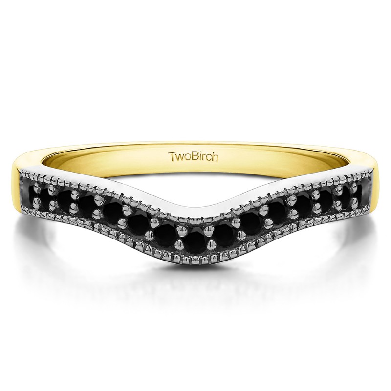 This curved wedding ring features 15 round, prong set stones with 0.5 carats in total. The ring is 2 millimeters wide and weighs approximately 5.35 grams. This contour band is made to fit a round, princess or marquise cut solitaire from 0.2 carats up to 1.5 carats. Curved rings are perfect for most style engagement rings. If you are unsure what will fit with your engagement ring, please add Virtual Fit onto your order so we can email you images of our ring with yours for approval before shipping.
