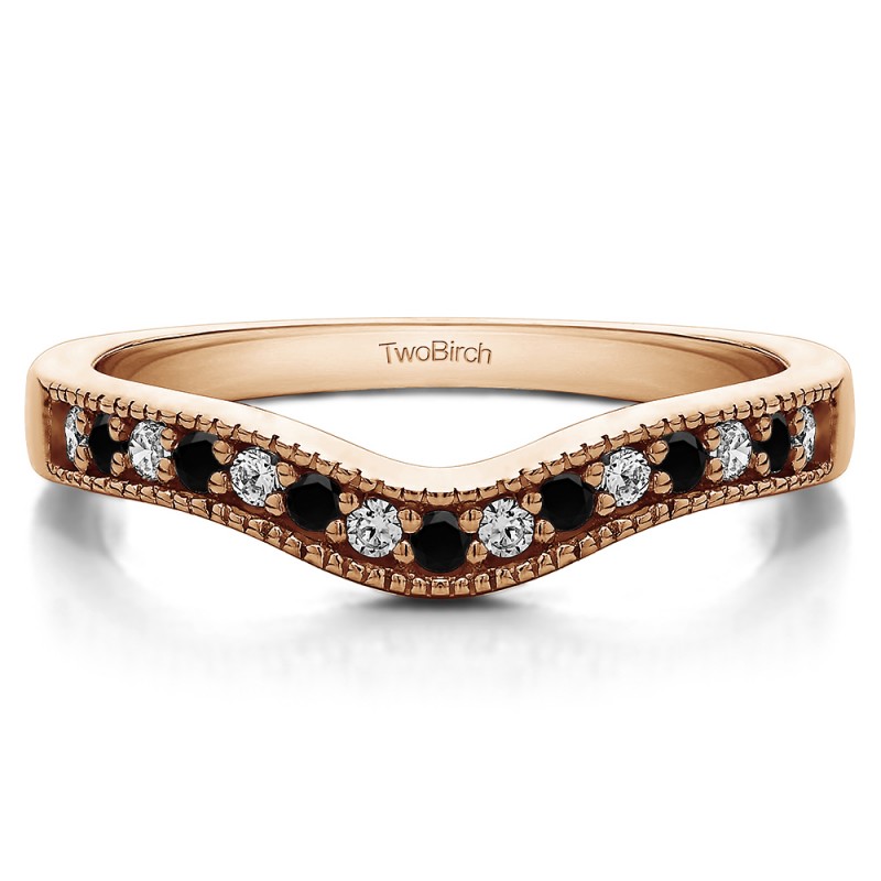 This curved wedding ring features 15 round, prong set stones with 0.5 carats in total. The ring is 2 millimeters wide and weighs approximately 5.35 grams. a round, princess or marquise cut solitaire from 0.5 carats up to 2 carats. Curved rings are perfect for most style engagement rings. If you are unsure what will fit with your engagement ring, please add Virtual Fit onto your order so we can email you images of our ring with yours for approval before shipping.