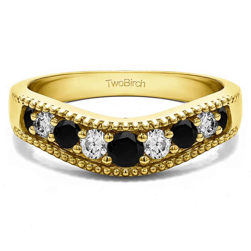 This curved wedding ring features 9 round, channel set stones with 0.5 carats in total. The ring is 2 millimeters wide and weighs approximately 4.79 grams. This contour band is made to fit a round, princess or marquise solitaire from 0.5 carats up to 1.5 carats. Curved rings are perfect for most style engagement rings. If you are unsure what will fit with your engagement ring, please add Virtual Fit onto your order so we can email you images of our ring with yours for approval before shipping.
