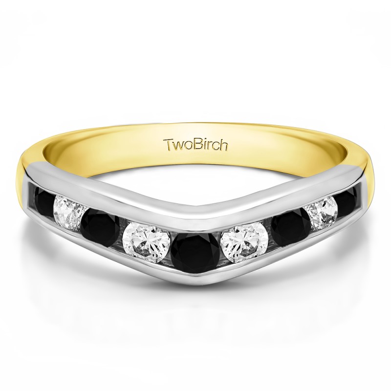 This curved wedding ring features 9 round, channel set stones with 1 carats in total. The ring is 2 millimeters wide and weighs approximately 5.23 grams. a round, princess or marquise cut solitaire from 0.5 carats up to 2 carats. Curved rings are perfect for most style engagement rings. If you are unsure what will fit with your engagement ring, please add Virtual Fit onto your order so we can email you images of our ring with yours for approval before shipping.