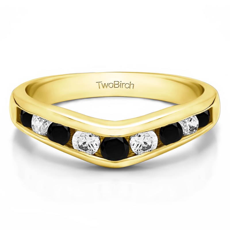 This curved wedding ring features 9 round, channel set stones with 1 carats in total. The ring is 2 millimeters wide and weighs approximately 5.23 grams. a round, princess or marquise cut solitaire from 0.5 carats up to 2 carats. Curved rings are perfect for most style engagement rings. If you are unsure what will fit with your engagement ring, please add Virtual Fit onto your order so we can email you images of our ring with yours for approval before shipping.