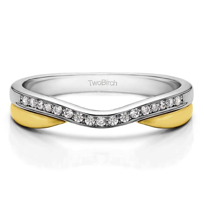 This curved wedding ring features 17 round, prong set stones with 0.11 carats in total. The ring is 2 millimeters wide and weighs approximately 4.04 grams. This contour band is made to fit a round or marquise solitaire from 1/2 carat up to 2 carats or a princess solitaire from 1/2 carat to 3/4 carat. Curved rings are perfect for most style engagement rings. If you are unsure what will fit with your engagement ring, please add Virtual Fit onto your order so we can email you images of our ring with yours for approval before shipping.