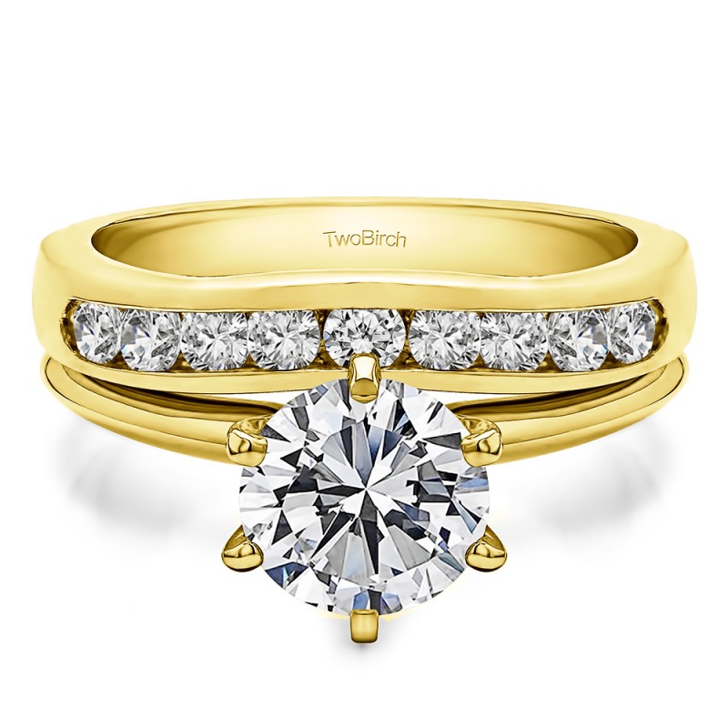 This curved wedding ring features 9 round, channel set stones with 0.25 carats in total. The ring is 2 millimeters wide and weighs approximately 3.9 grams. This contour band is made to fit a round or marquise solitaire from 1/2 carat up to 2 carats or a princess solitaire from 1/2 carat to 3/4 carat. Curved rings are perfect for most style engagement rings. If you are unsure what will fit with your engagement ring, please add Virtual Fit onto your order so we can email you images of our ring with yours for approval before shipping.