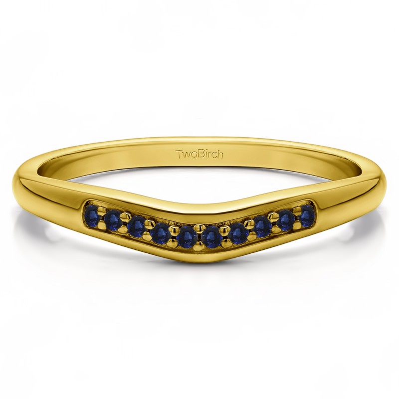 This curved wedding ring features 10 round, prong set stones with 0.1 carats in total. The ring is 2 millimeters wide and weighs approximately 3.18 grams. This contour band is made to fit a round or princess cut solitaire from 0.25 carats up to 2 carats, or a marquise solitaire from 0.25 carats up to 1 carat. Curved rings are perfect for most style engagement rings. If you are unsure what will fit with your engagement ring, please add Virtual Fit onto your order so we can email you images of our ring with yours for approval before shipping.