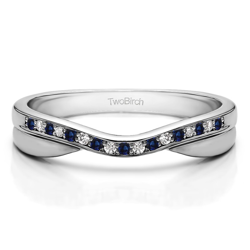 This curved wedding ring features 17 round, prong set stones with 0.11 carats in total. The ring is 2 millimeters wide and weighs approximately 4.04 grams. This contour band is made to fit a round or princess cut solitaire from 0.5 carats up to 1 carats, or a marquise solitaire from 0.25 carats up to 1 carat. Curved rings are perfect for most style engagement rings. If you are unsure what will fit with your engagement ring, please add Virtual Fit onto your order so we can email you images of our ring with yours for approval before shipping.