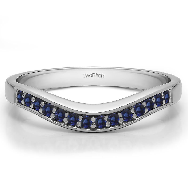 This curved wedding ring features 14 round, prong set stones with 0.18 carats in total. The ring is 2 millimeters wide and weighs approximately 4.16 grams. This contour band is made to fit a round solitaire from 0.5 carats up to 2 carats, a marquise solitaire from 0.25 carats up to 1 carats, or a princess cut solitaire from 0.5 carats up to 1 carats. Curved rings are perfect for most style engagement rings. If you are unsure what will fit with your engagement ring, please add Virtual Fit onto your order so we can email you images of our ring with yours for approval before shipping.