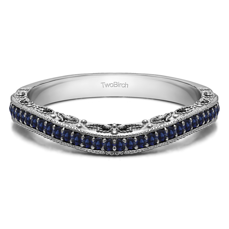 This curved wedding ring features 36 round, prong set stones with 0.18 carats in total. The ring is 2 millimeters wide and weighs approximately 3.45 grams. This contour band is made to fit a round or princess cut solitaire from 0.5 carats up to 1 carats, or a marquise solitaire from 0.25 carats up to 1 carat. Curved rings are perfect for most style engagement rings. If you are unsure what will fit with your engagement ring, please add Virtual Fit onto your order so we can email you images of our ring with yours for approval before shipping.