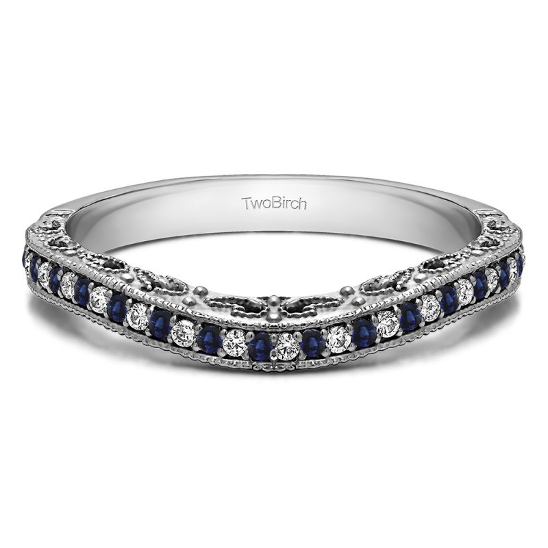This curved wedding ring features 36 round, prong set stones with 0.18 carats in total. The ring is 2 millimeters wide and weighs approximately 3.45 grams. This contour band is made to fit a round or princess cut solitaire from 0.5 carats up to 1 carats, or a marquise solitaire from 0.25 carats up to 1 carat. Curved rings are perfect for most style engagement rings. If you are unsure what will fit with your engagement ring, please add Virtual Fit onto your order so we can email you images of our ring with yours for approval before shipping.