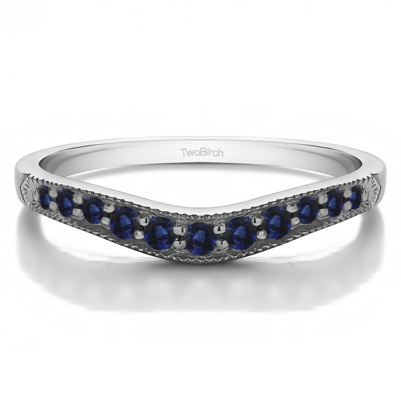 This curved wedding ring features 11 round, prong set stones with 0.2 carats in total. The ring is 2 millimeters wide and weighs approximately 2.72 grams. This contour band is made to fit a round solitaire from 0.5 carats up to 2 carats, a marquise solitaire from 0.25 carats up to 1 carats, or a princess cut solitaire from 0.5 carats up to 1 carats. Curved rings are perfect for most style engagement rings. If you are unsure what will fit with your engagement ring, please add Virtual Fit onto your order so we can email you images of our ring with yours for approval before shipping.