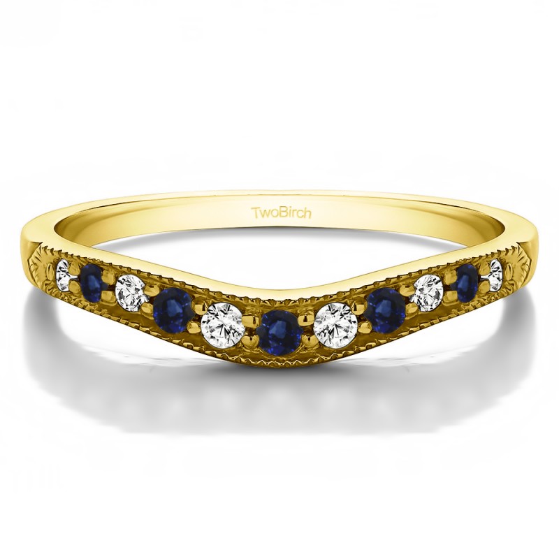 This curved wedding ring features 11 round, prong set stones with 0.2 carats in total. The ring is 2 millimeters wide and weighs approximately 2.72 grams. This contour band is made to fit a round or marquise solitaire from 0.75 carats up to 1 carats, or a princess solitaire from 0.75 carats up to 1 carat. Curved rings are perfect for most style engagement rings. If you are unsure what will fit with your engagement ring, please add Virtual Fit onto your order so we can email you images of our ring with yours for approval before shipping.