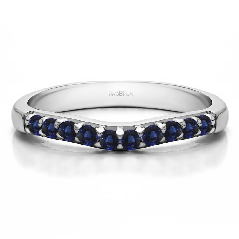 This curved wedding ring features 10 round, prong set stones with 0.25 carats in total. The ring is 2 millimeters wide and weighs approximately 3.55 grams. This contour band is made to fit a round solitaire from 0.5 carats up to 2 carats, a marquise solitaire from 0.25 carats up to 1 carats, or a princess cut solitaire from 0.5 carats up to 1 carats. Curved rings are perfect for most style engagement rings. If you are unsure what will fit with your engagement ring, please add Virtual Fit onto your order so we can email you images of our ring with yours for approval before shipping.