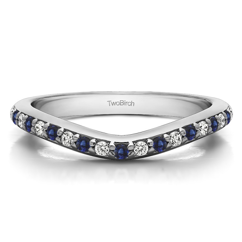 This curved wedding ring features 19 round, prong set stones with 0.25 carats in total. The ring is 2 millimeters wide and weighs approximately 3.52 grams. This contour band is made to fit a round or princess cut solitaire from 0.5 carats up to 1 carats, or a marquise solitaire from 0.25 carats up to 1 carat. Curved rings are perfect for most style engagement rings. If you are unsure what will fit with your engagement ring, please add Virtual Fit onto your order so we can email you images of our ring with yours for approval before shipping.