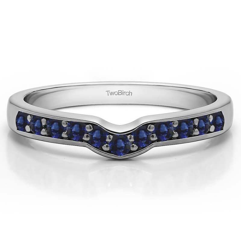This curved wedding ring features 11 round, prong set stones with 0.33 carats in total. The ring is 2 millimeters wide and weighs approximately 3.68 grams. This contour band is made to fit a round solitaire from 0.5 carats up to 2 carats, a marquise solitaire from 0.25 carats up to 1 carats, or a princess cut solitaire from 0.5 carats up to 1 carats. Curved rings are perfect for most style engagement rings. If you are unsure what will fit with your engagement ring, please add Virtual Fit onto your order so we can email you images of our ring with yours for approval before shipping.