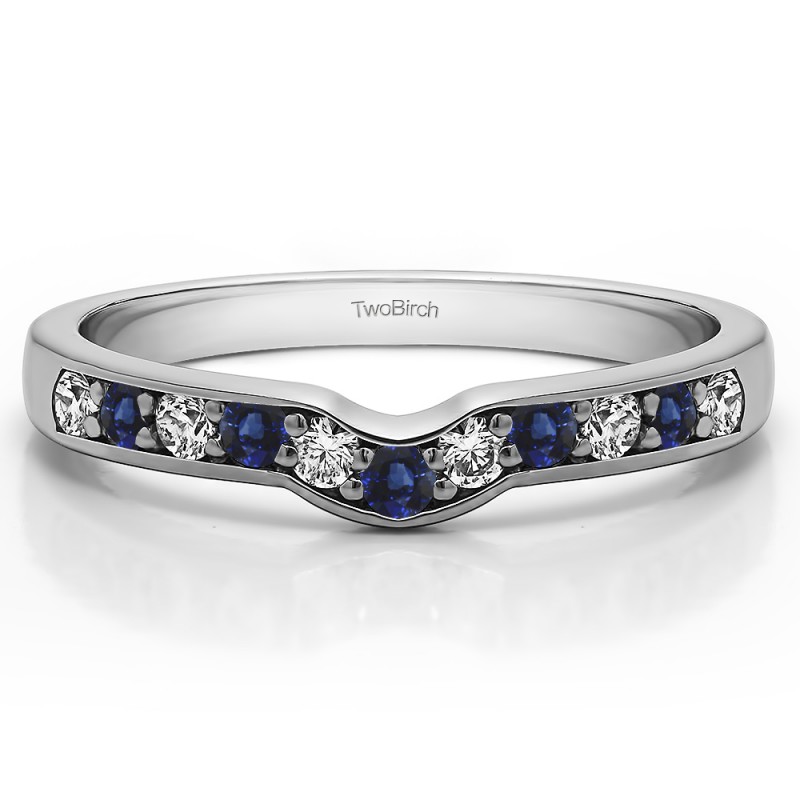 This curved wedding ring features 11 round, prong set stones with 0.33 carats in total. The ring is 2 millimeters wide and weighs approximately 3.68 grams. This contour band is made to fit a round or princess cut solitaire from 0.25 carats up to 1.5 carats, or a marquise solitaire from 0.25 carats up to 1 carat. Curved rings are perfect for most style engagement rings. If you are unsure what will fit with your engagement ring, please add Virtual Fit onto your order so we can email you images of our ring with yours for approval before shipping.