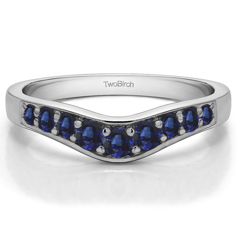 This curved wedding ring features 9 round, prong set stones with 0.35 carats in total. The ring is 2 millimeters wide and weighs approximately 3.76 grams. This contour band is made to fit a round solitaire from 0.5 carats up to 2 carats, a marquise solitaire from 0.25 carats up to 1 carats, or a princess cut solitaire from 0.5 carats up to 1 carats. Curved rings are perfect for most style engagement rings. If you are unsure what will fit with your engagement ring, please add Virtual Fit onto your order so we can email you images of our ring with yours for approval before shipping.