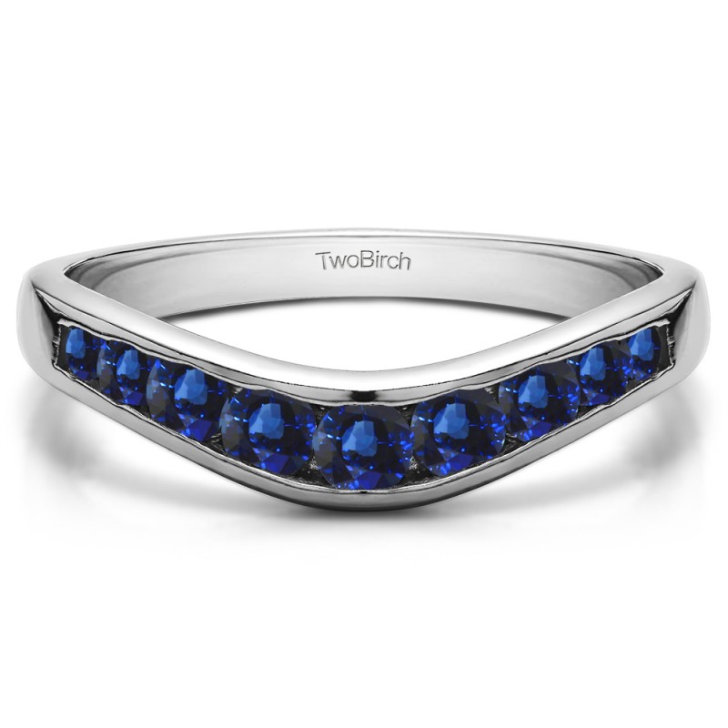 This curved wedding ring features 9 round, channel set stones with 0.42 carats in total. The ring is 2 millimeters wide and weighs approximately 4.56 grams. This contour band is made to fit a round solitaire from 0.5 carats up to 2 carats, a marquise solitaire from 0.25 carats up to 1 carats, or a princess cut solitaire from 0.5 carats up to 1 carats. Curved rings are perfect for most style engagement rings. If you are unsure what will fit with your engagement ring, please add Virtual Fit onto your order so we can email you images of our ring with yours for approval before shipping.