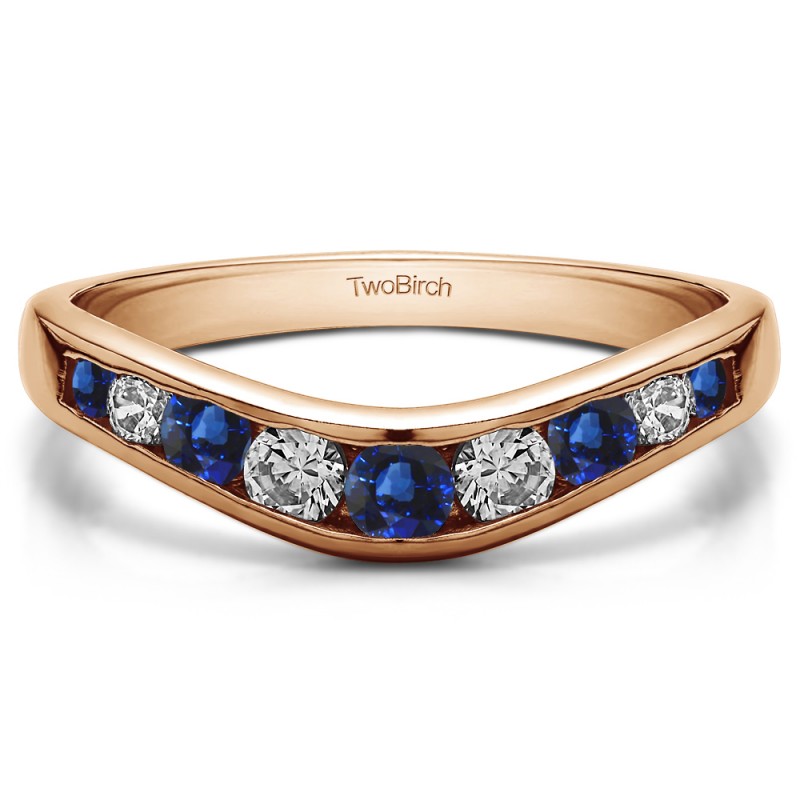 This curved wedding ring features 9 round, channel set stones with 0.42 carats in total. The ring is 2 millimeters wide and weighs approximately 4.56 grams. This contour band is made to fit a round or princess cut solitaire from 0.25 carats up to 1.5 carats, or a marquise solitaire from 0.25 carats up to 1 carat. Curved rings are perfect for most style engagement rings. If you are unsure what will fit with your engagement ring, please add Virtual Fit onto your order so we can email you images of our ring with yours for approval before shipping.