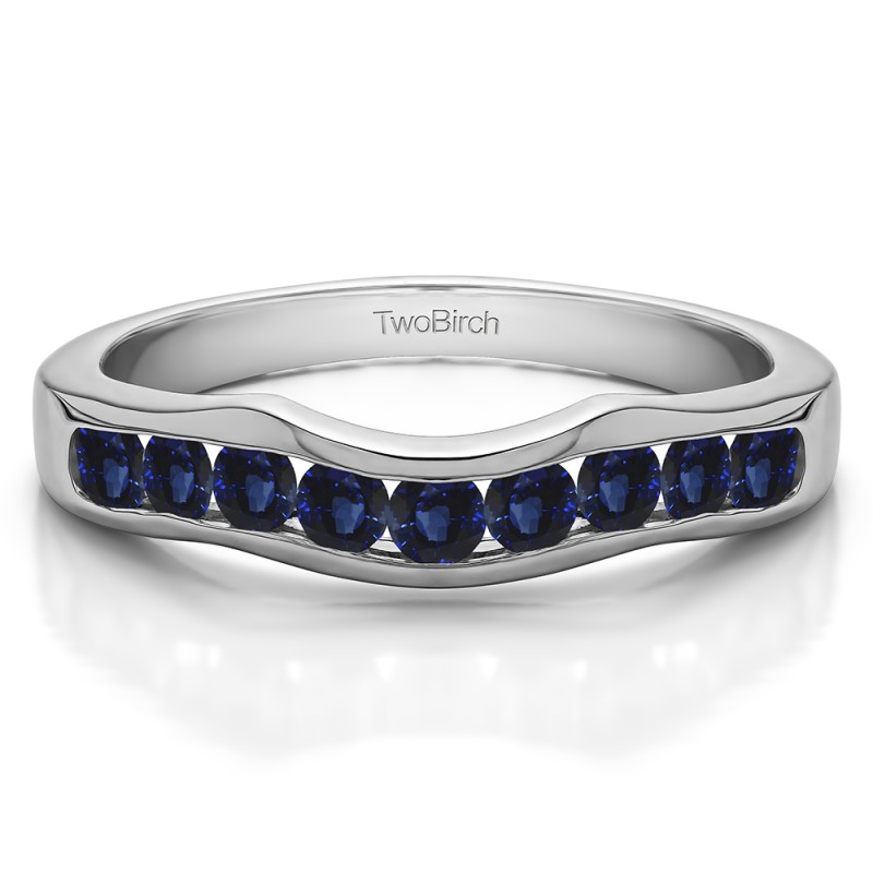 This curved wedding ring features 8 round, channel set stones with 0.48 carats in total. The ring is 2 millimeters wide and weighs approximately 4.25 grams. This contour band is made to fit a round solitaire from 0.5 carats up to 2 carats, a marquise solitaire from 0.25 carats up to 1 carats, or a princess cut solitaire from 0.5 carats up to 1 carats. Curved rings are perfect for most style engagement rings. If you are unsure what will fit with your engagement ring, please add Virtual Fit onto your order so we can email you images of our ring with yours for approval before shipping.