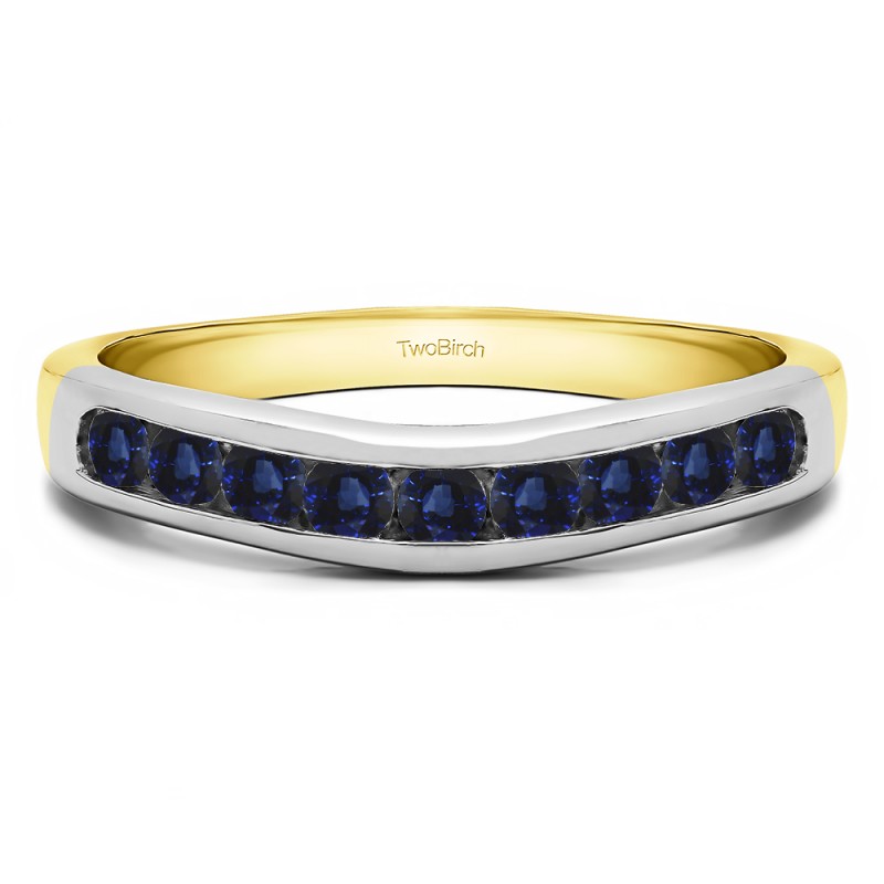 This curved wedding ring features 9 round, channel set stones with 0.5 carats in total. The ring is 2 millimeters wide and weighs approximately 4.14 grams. This contour band is made to fit a round solitaire from 0.5 carats up to 2 carats, a marquise solitaire from 0.25 carats up to 1 carats, or a princess cut solitaire from 0.5 carats up to 1 carats. Curved rings are perfect for most style engagement rings. If you are unsure what will fit with your engagement ring, please add Virtual Fit onto your order so we can email you images of our ring with yours for approval before shipping.
