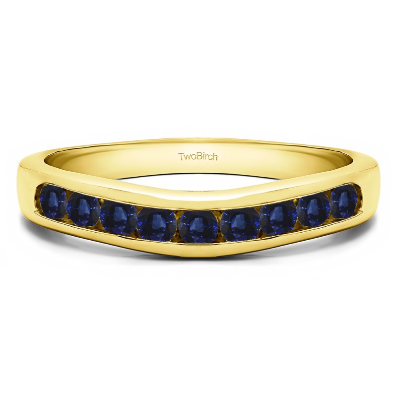 This curved wedding ring features 9 round, channel set stones with 0.5 carats in total. The ring is 2 millimeters wide and weighs approximately 4.14 grams. This contour band is made to fit a round solitaire from 0.5 carats up to 2 carats, a marquise solitaire from 0.25 carats up to 1 carats, or a princess cut solitaire from 0.5 carats up to 1 carats. Curved rings are perfect for most style engagement rings. If you are unsure what will fit with your engagement ring, please add Virtual Fit onto your order so we can email you images of our ring with yours for approval before shipping.