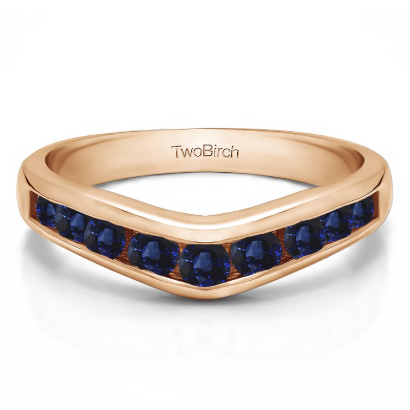 This curved wedding ring features 9 round, channel set stones with 0.75 carats in total. The ring is 2 millimeters wide and weighs approximately 4.48 grams. This contour band is made to fit a round solitaire from 0.5 carats up to 2 carats, a marquise solitaire from 0.25 carats up to 1 carats, or a princess cut solitaire from 0.5 carats up to 1 carats. Curved rings are perfect for most style engagement rings. If you are unsure what will fit with your engagement ring, please add Virtual Fit onto your order so we can email you images of our ring with yours for approval before shipping.