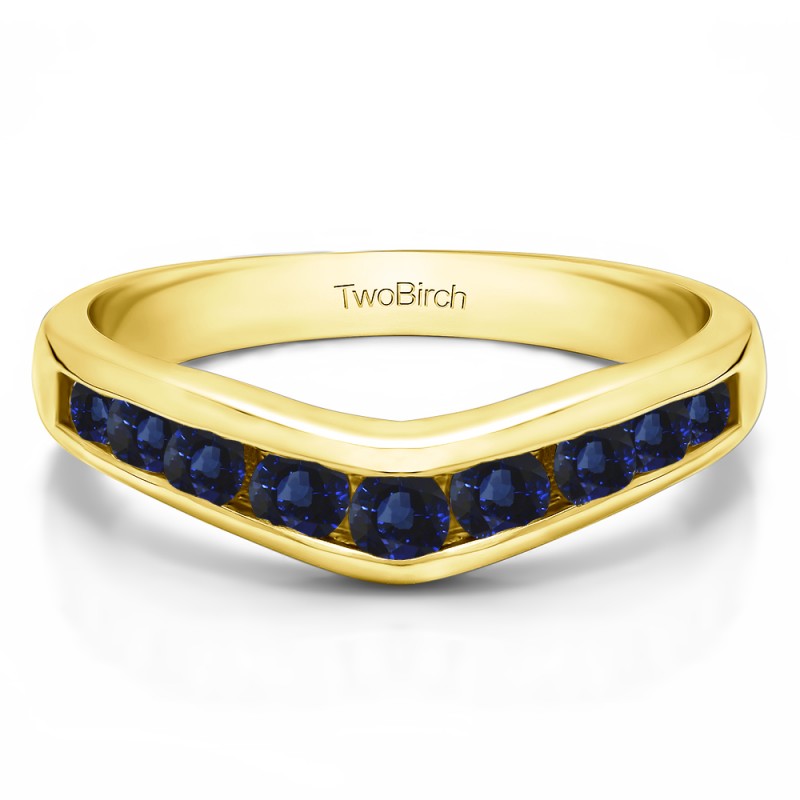 This curved wedding ring features 9 round, channel set stones with 0.75 carats in total. The ring is 2 millimeters wide and weighs approximately 4.48 grams. This contour band is made to fit a round solitaire from 0.5 carats up to 2 carats, a marquise solitaire from 0.25 carats up to 1 carats, or a princess cut solitaire from 0.5 carats up to 1 carats. Curved rings are perfect for most style engagement rings. If you are unsure what will fit with your engagement ring, please add Virtual Fit onto your order so we can email you images of our ring with yours for approval before shipping.