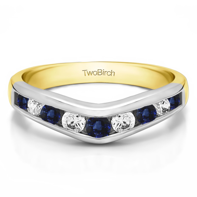 This curved wedding ring features 9 round, channel set stones with 0.75 carats in total. The ring is 2 millimeters wide and weighs approximately 4.48 grams. This contour band is made to fit a round, princess or marquise solitaire from 0.5 carats up to 1.5 carats. Curved rings are perfect for most style engagement rings. If you are unsure what will fit with your engagement ring, please add Virtual Fit onto your order so we can email you images of our ring with yours for approval before shipping.