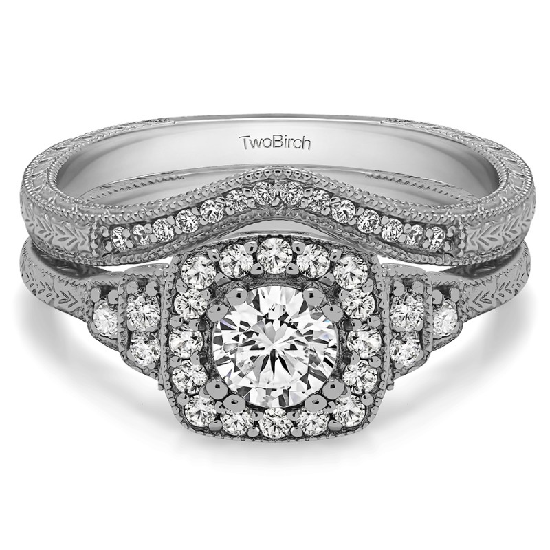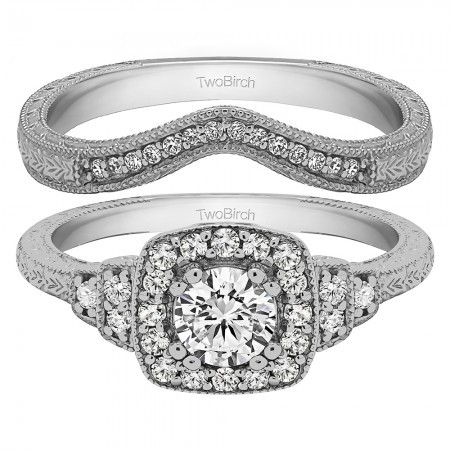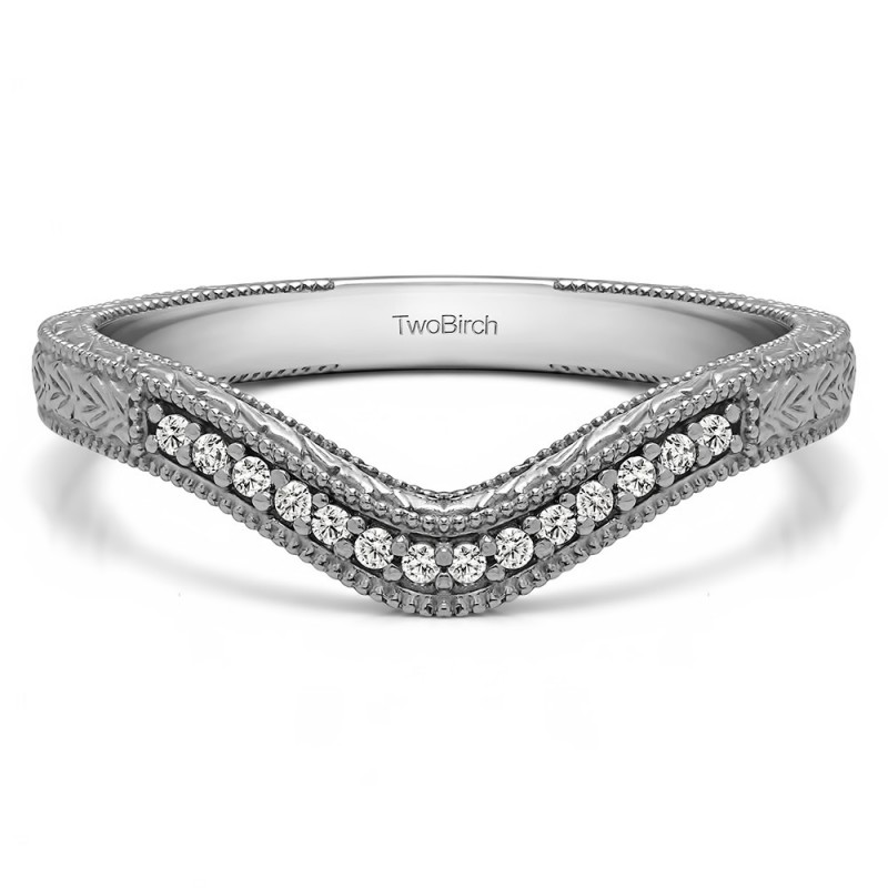 0.07 Carat Curved Vintage Millgrained Wedding Ring