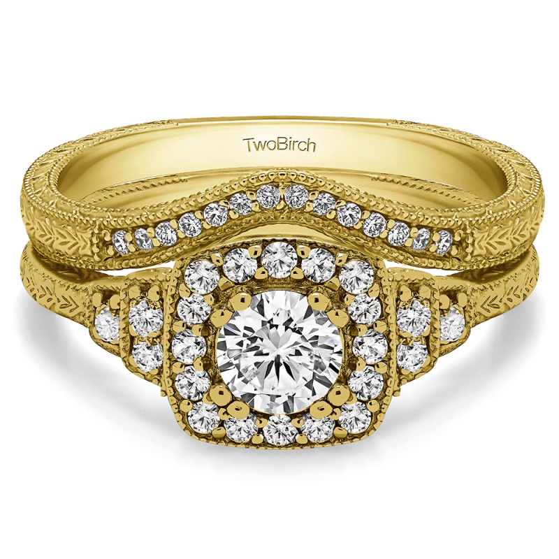 0.07 Carat Curved Vintage Millgrained Wedding Ring