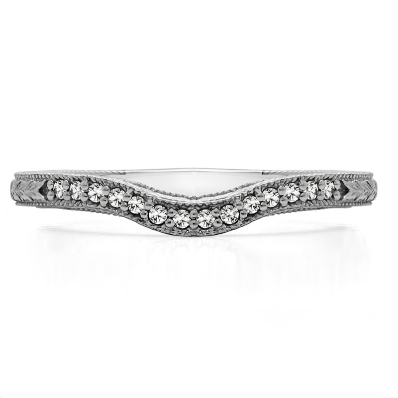 This wedding ring is made to match with the engagement ring below. If you already have an engagement ring, you can add PerfectFit onto your order. We will send you images of your engagment ring with our matching band. You can consider it a virtual ring fitting.