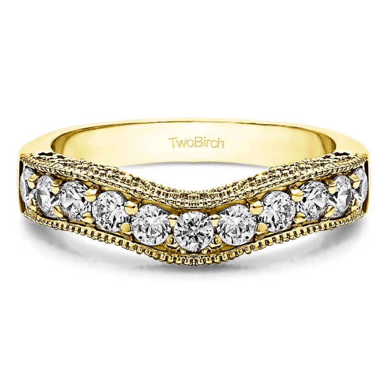 0.75 Ct. Vintage Filigree & Milgrained Curved Wedding Band in Yellow Gold