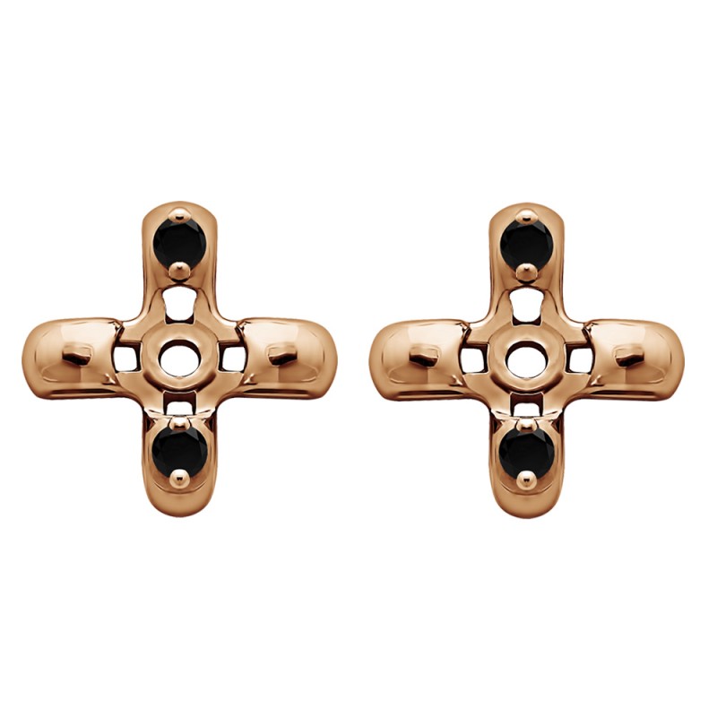 These earring jackets feature 4 round, prong set stones weighing 0.06 carats. Earring jackets are sold in pairs. They weigh approximately 2.0925 grams. They will fit round studs of 0.15 - 0.5 carats or princess cut studs of 0.25 - 0.75 carats (per stud).