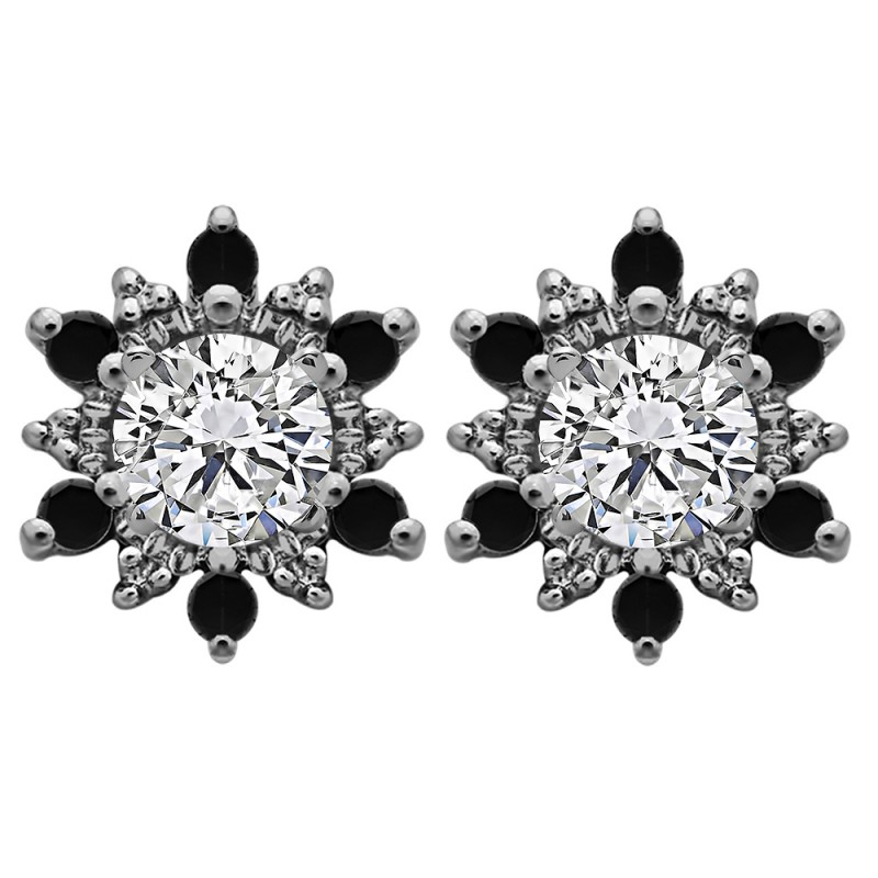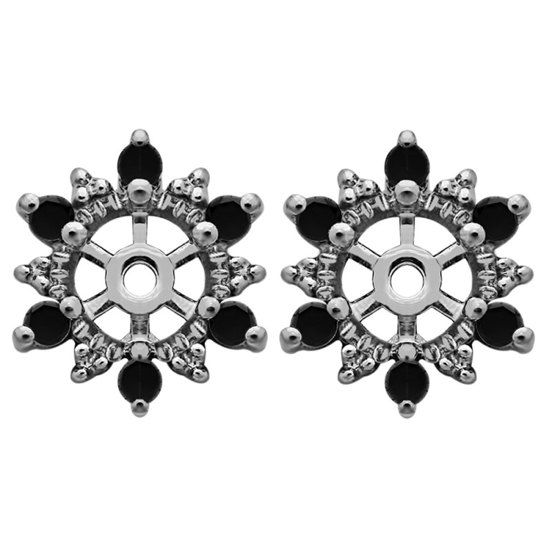These earring jackets feature 12 round, prong set stones weighing 0.24 carats. Earring jackets are sold in pairs. They weigh approximately 2.17 grams. This pair of earring jackets will fit the following size studs (weights are per STONE carat weight, not PAIR of earrings carat weight):Made to fit a round stud earring from 0.15 up to 0.5 carats or a princess cut stud from 0.25 up to 0.75 carats (per stud).