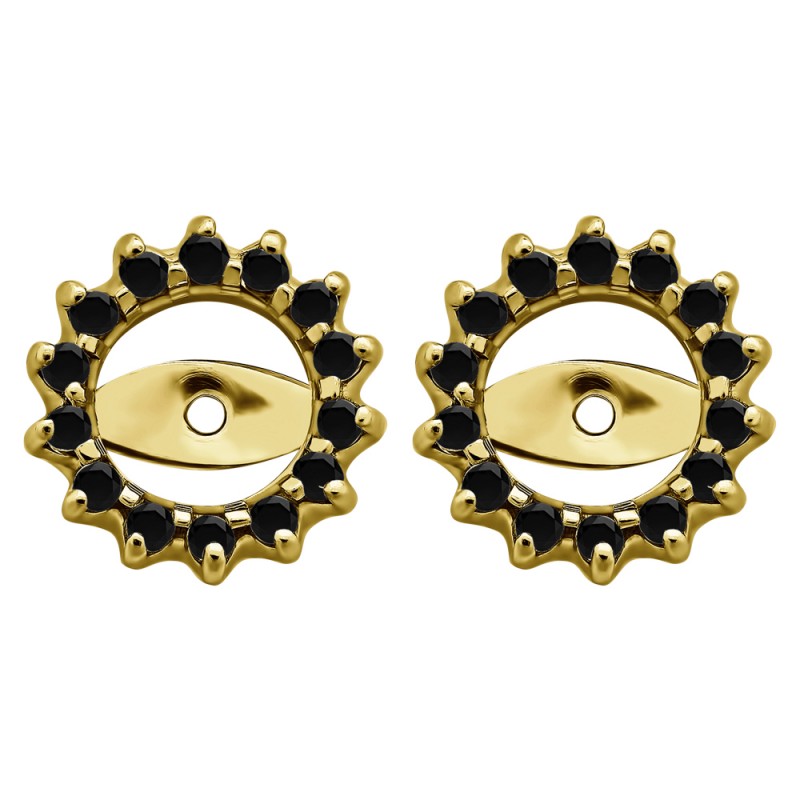These earring jackets feature 28 round, prong set stones weighing 0.28 carats. Earring jackets are sold in pairs. They weigh approximately 2.48 grams. This pair of earring jackets will fit the following size studs (weights are per STONE carat weight, not PAIR of earrings carat weight):Made to fit a round stud earring from 0.35 up to 0.75 carats or a princess cut stud from 0.5 up to 0.75 carats (per stud).